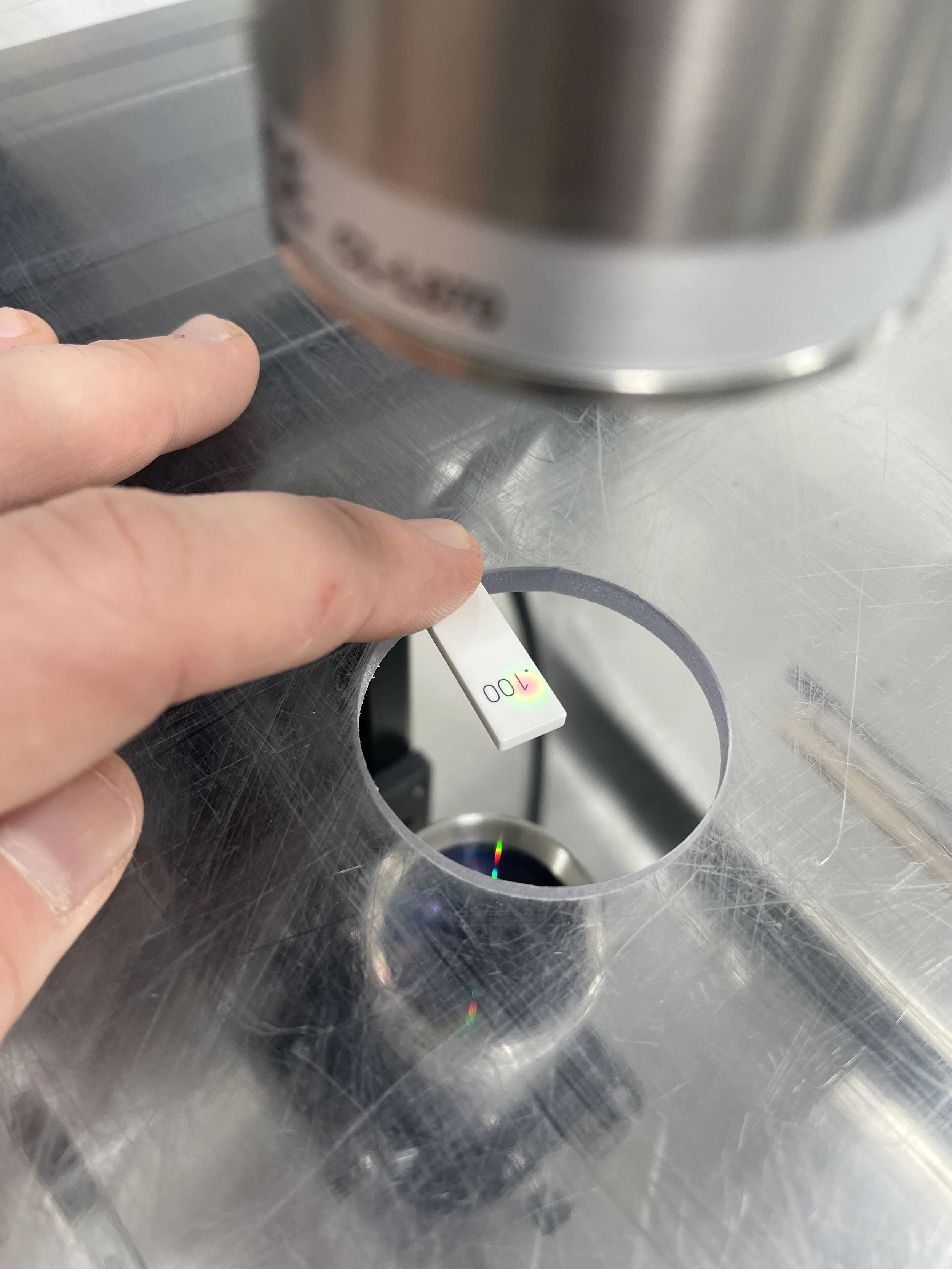 Afterwards I verified the the calibration of the Confocal Laser was verified using a Mitutoyo .100” Grade 00 Ceramic Gauge block.